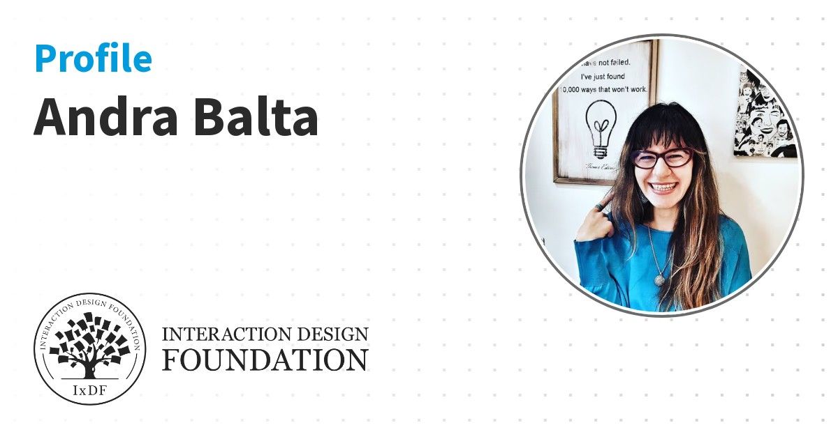 IxDF Course Certificates are awarded to Andra Balta in formal recognition of their coursework surpassing the rigorous benchmarks of exceptional performance established by the IxDF Educational Codex.