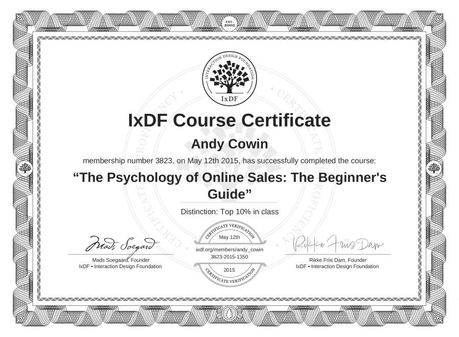Andy Cowin's IxDF Course Certificate: The Psychology of Online Sales: The Beginner's Guide