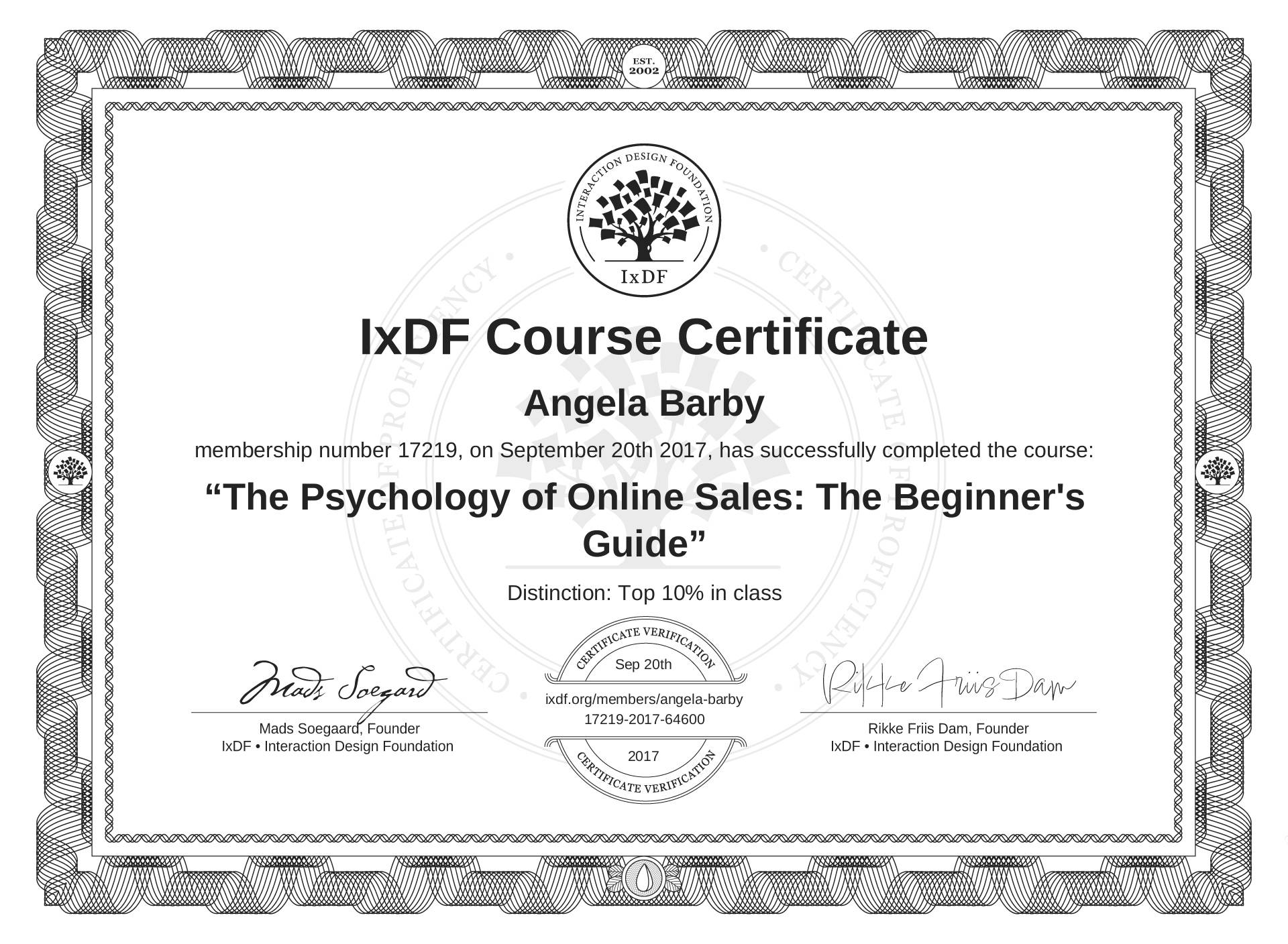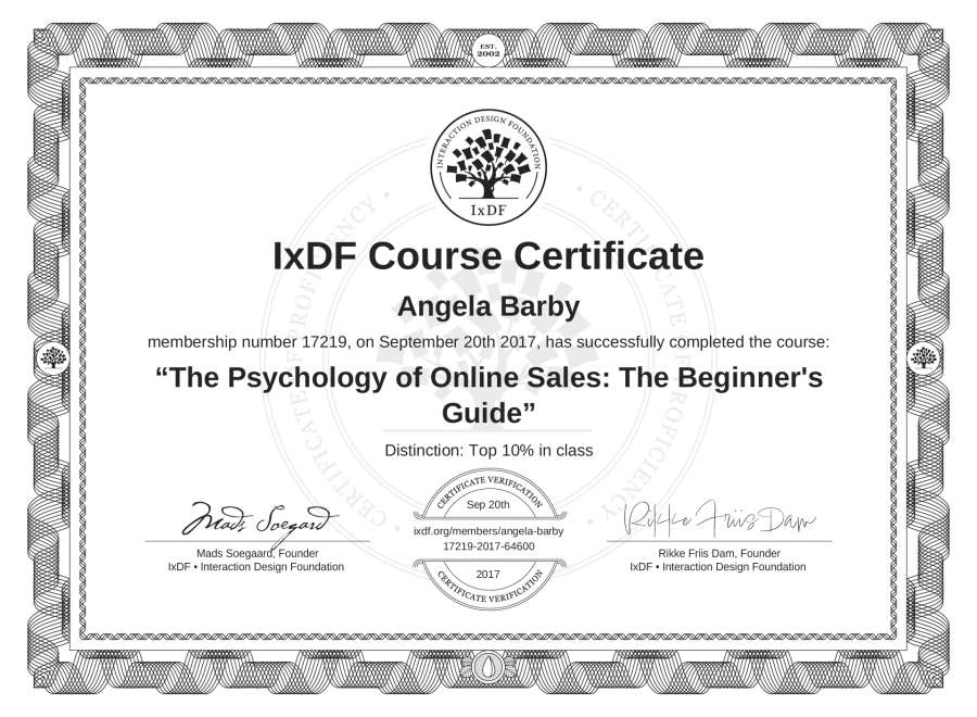Angela Barby's IxDF Course Certificate: The Psychology of Online Sales: The Beginner's Guide