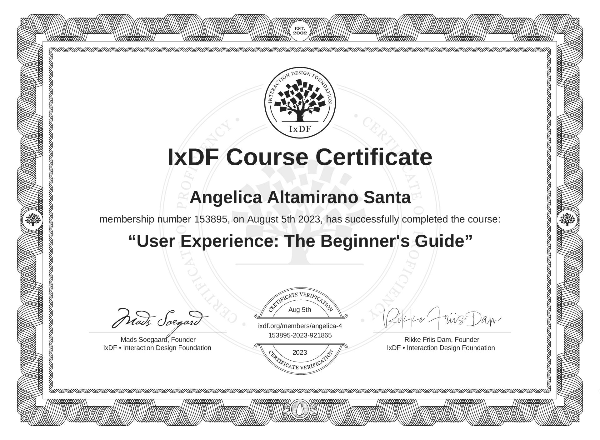 Angélica Altamirano Santa's IxDF Course Certificate: User Experience: The Beginner's Guide