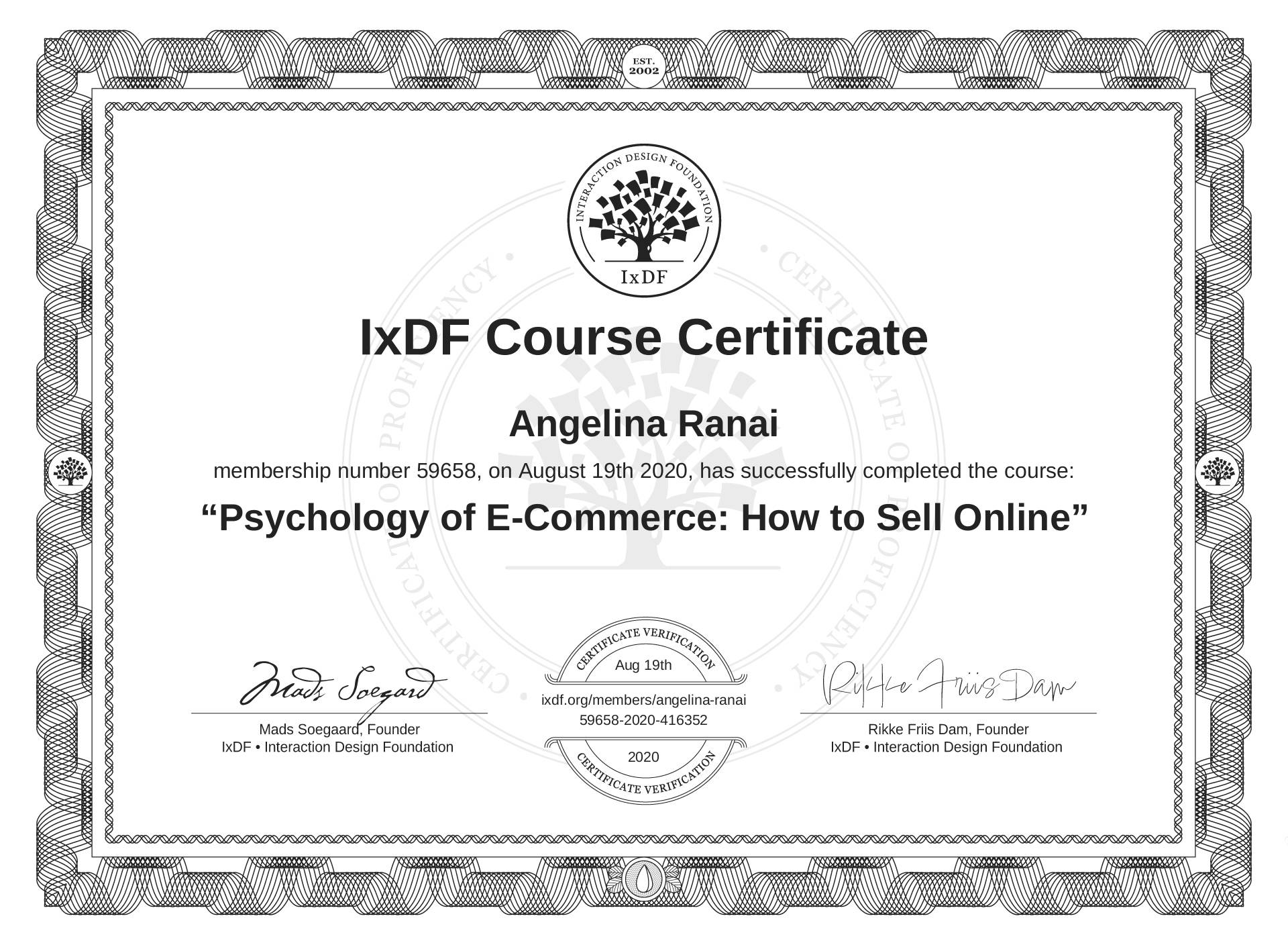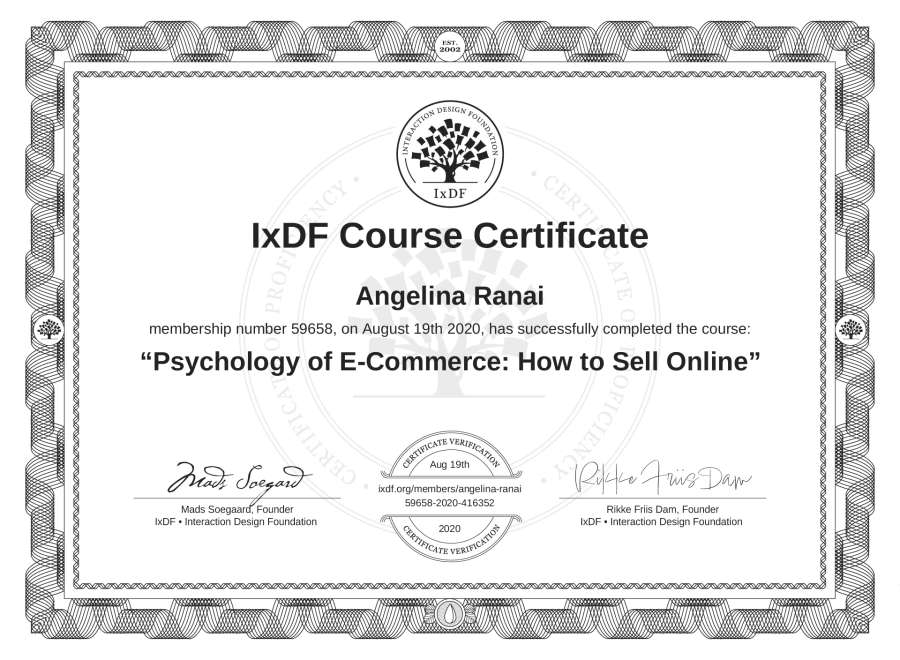 Angelina Ranai's IxDF Course Certificate: Psychology of E-Commerce: How to Sell Online