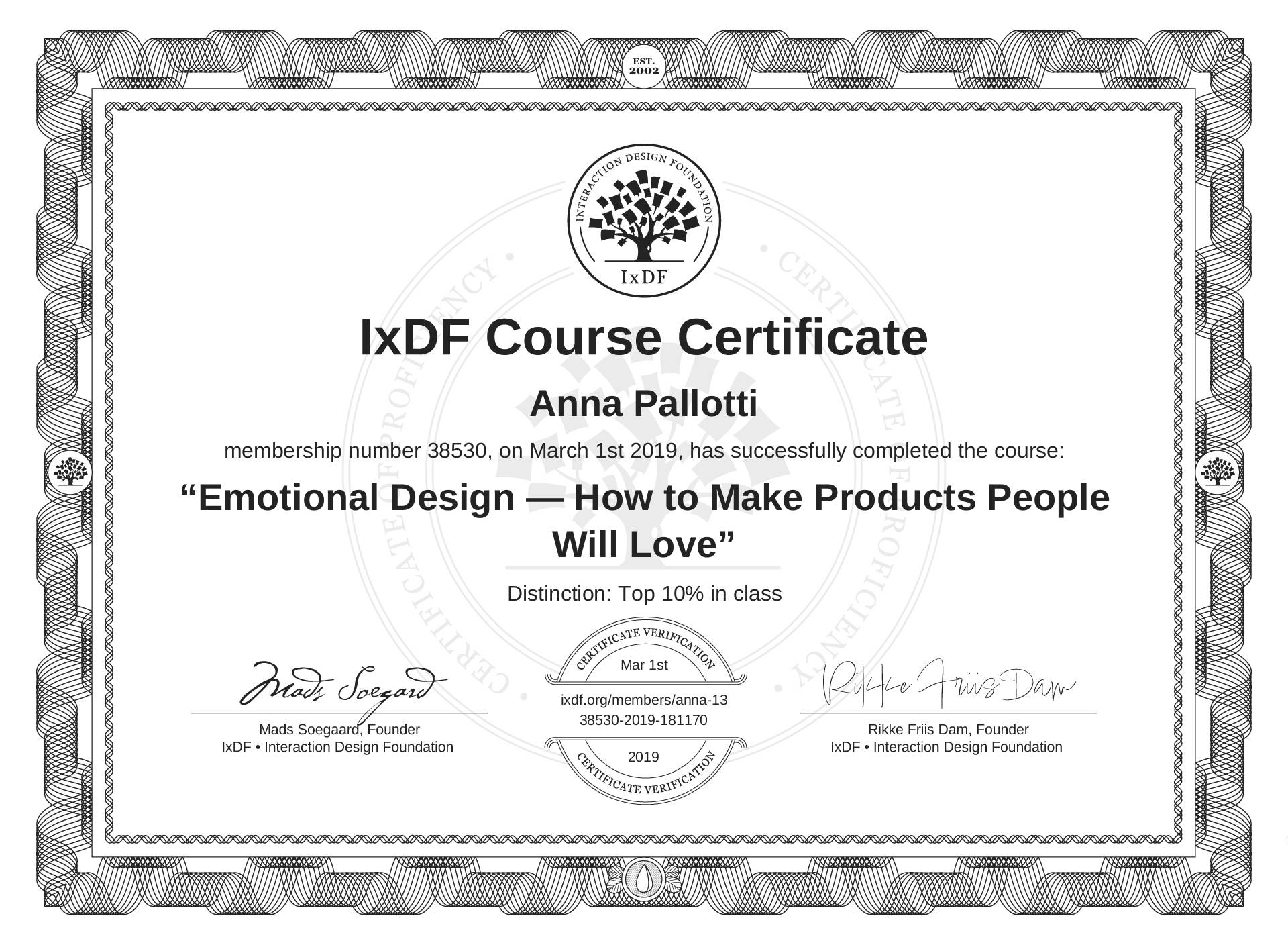 Anna Pallotti's IxDF Course Certificate: Emotional Design — How to Make Products People Will Love
