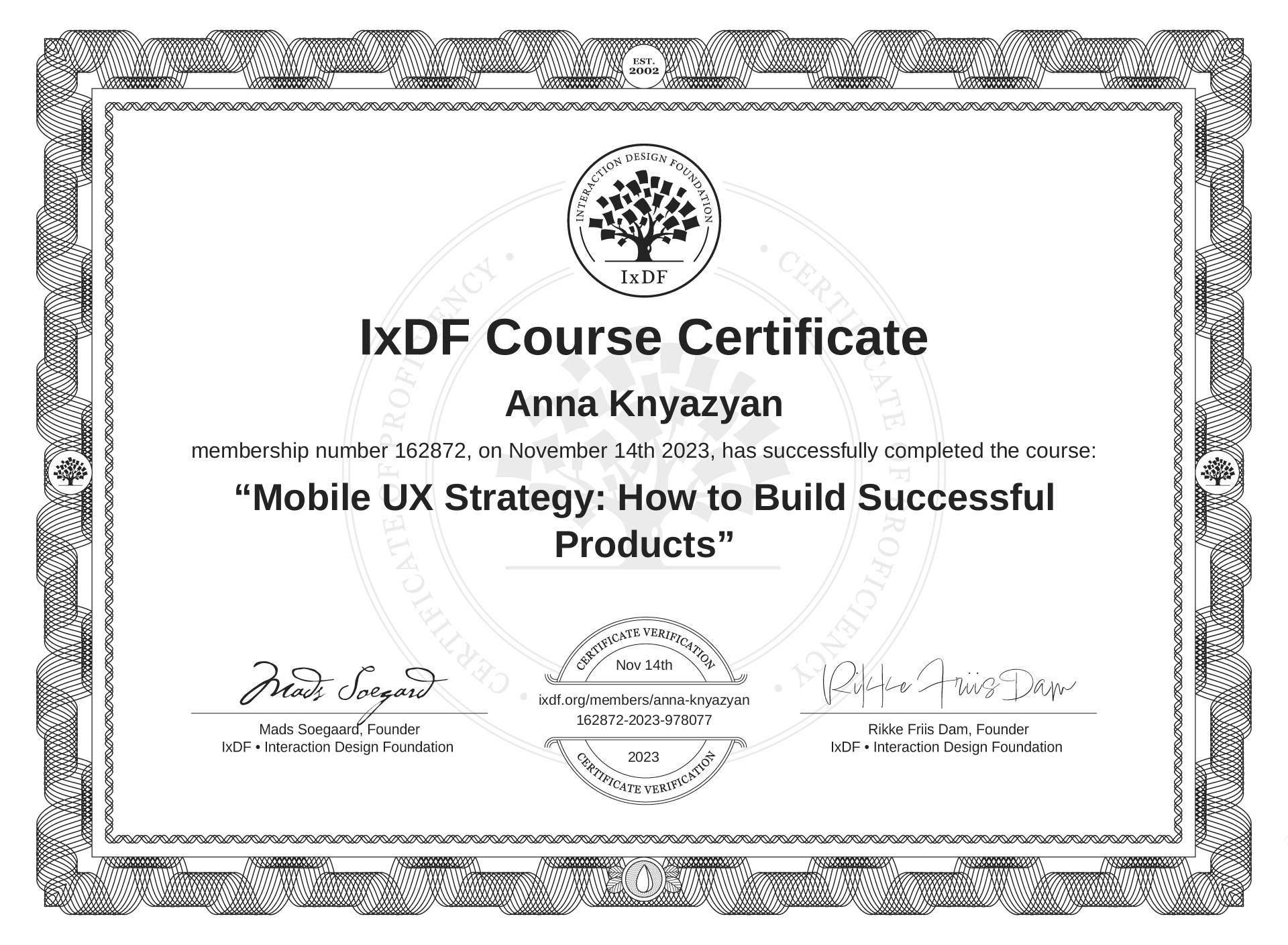 Anna Knyazyan's IxDF Course Certificate: Mobile UX Strategy: How to Build Successful Products