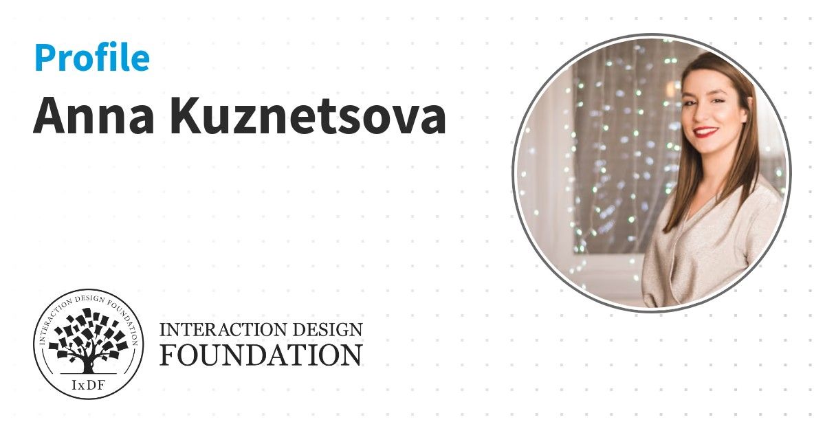 IxDF Course Certificates are awarded to Anna Kuznetsova in formal recognition of their coursework surpassing the rigorous benchmarks of exceptional performance established by the IxDF Educational Codex.