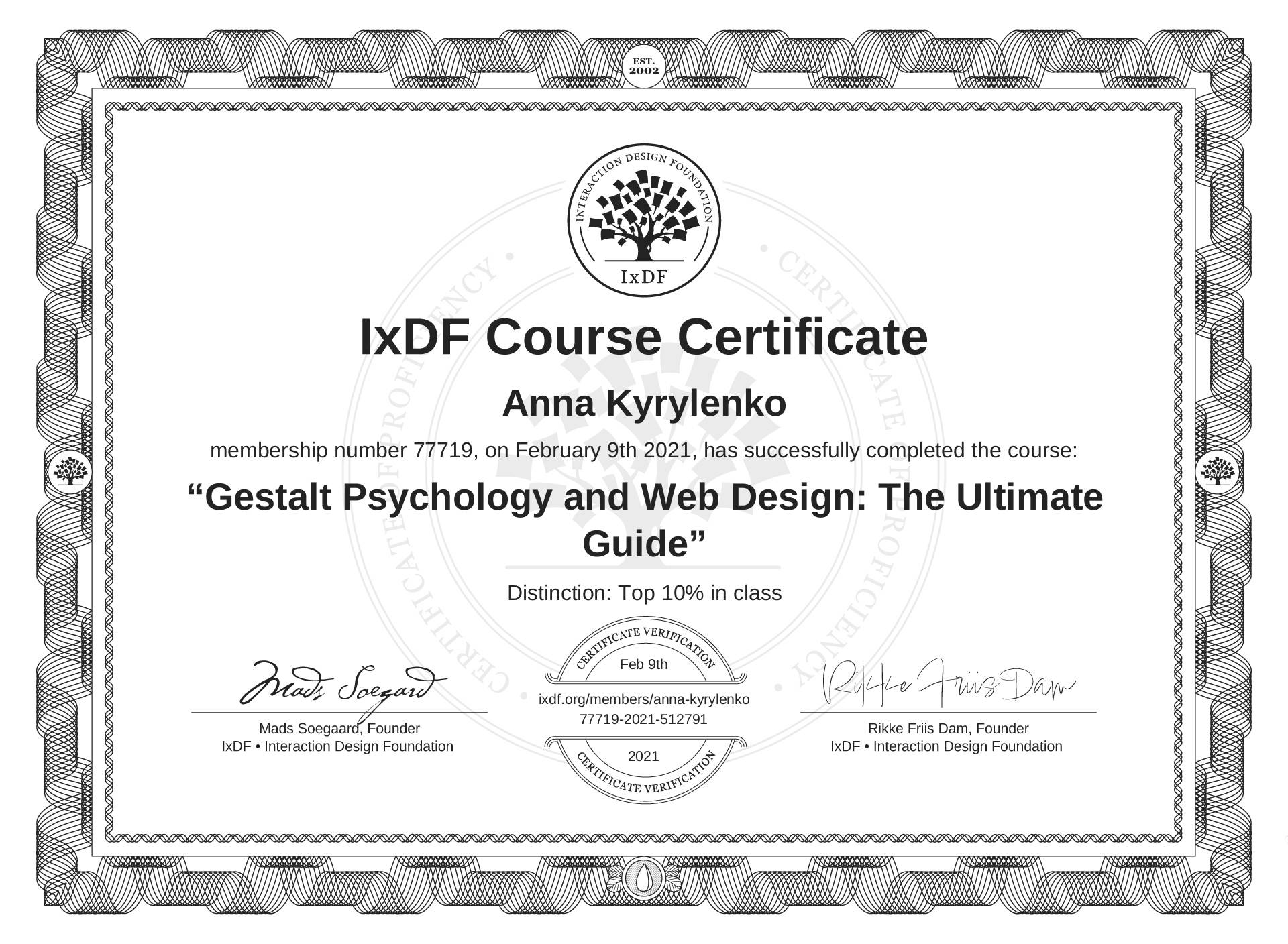 Anna Kyrylenko's IxDF Course Certificate: Gestalt Psychology and Web Design: The Ultimate Guide