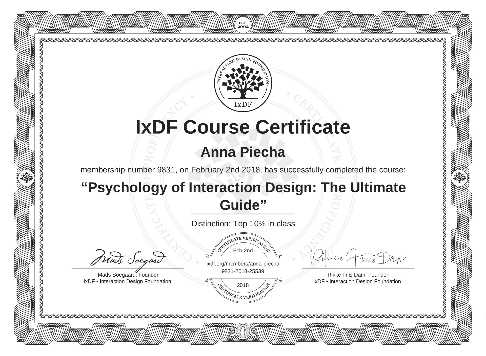 Anna Piecha's IxDF Course Certificate: Psychology of Interaction Design: The Ultimate Guide