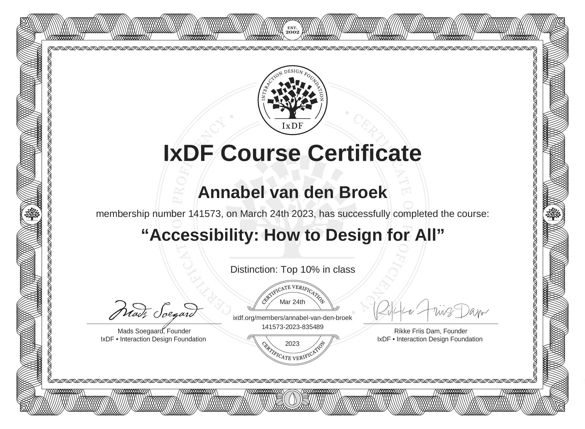 Annabel van den Broek's IxDF Course Certificate: Accessibility: How to Design for All