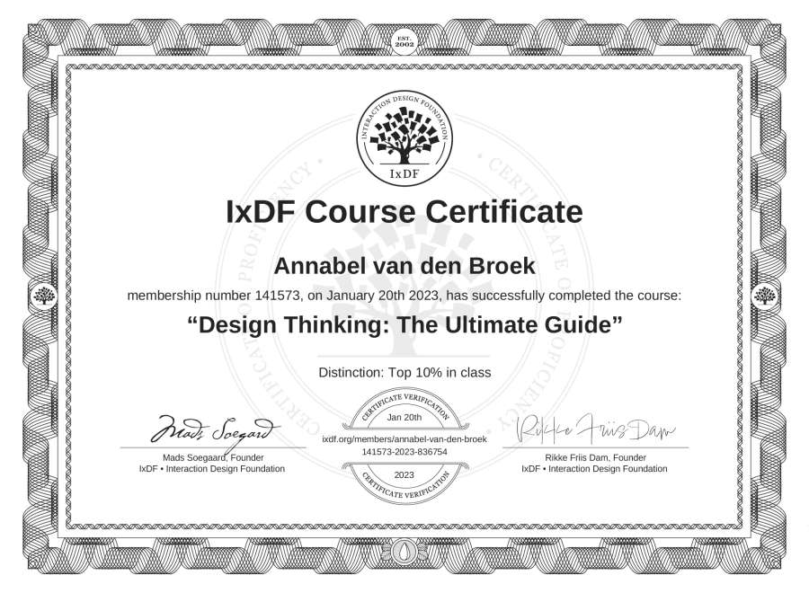 Annabel van den Broek's IxDF Course Certificate: Design Thinking: The Ultimate Guide