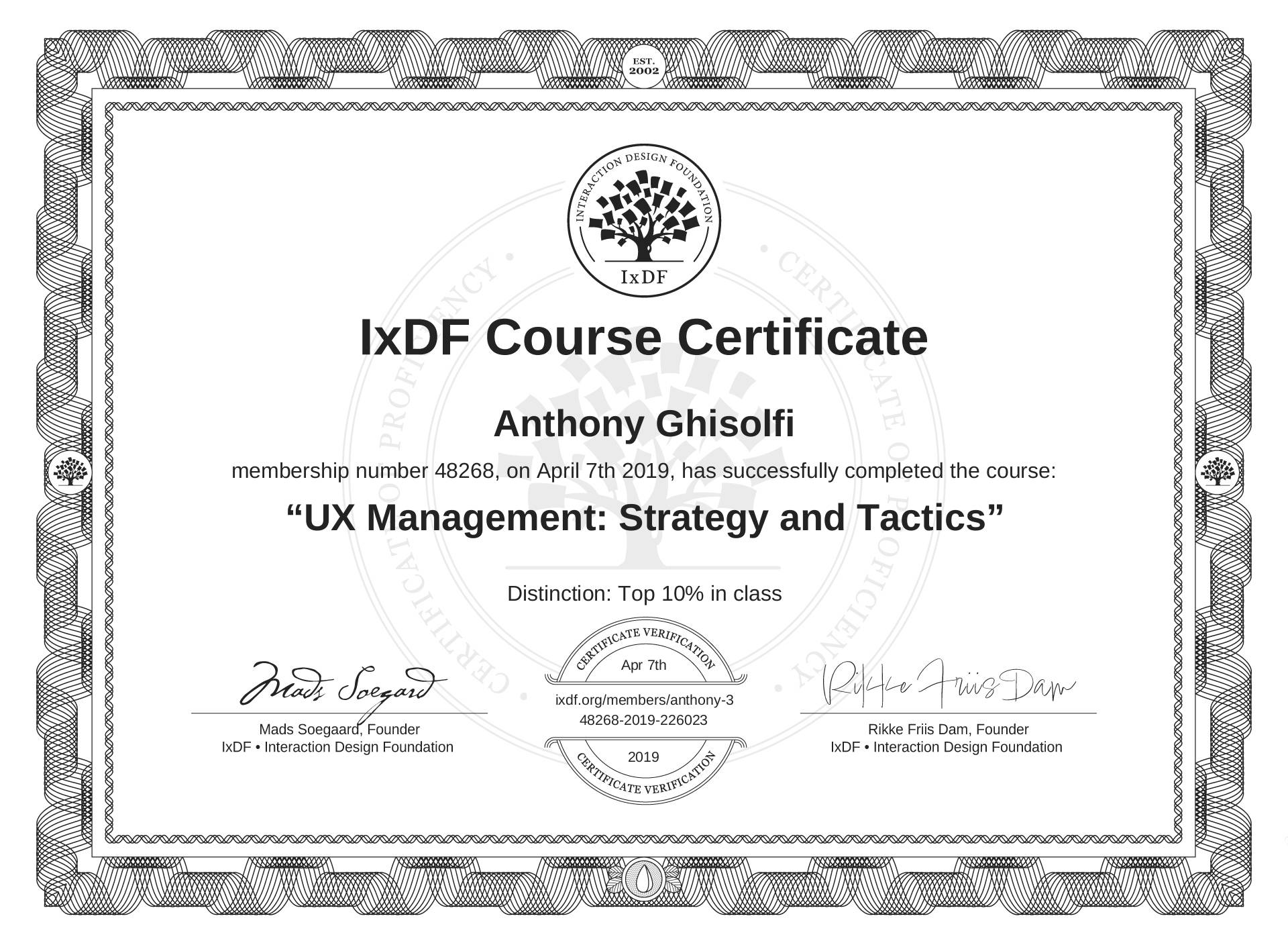 Anthony Ghisolfi's IxDF Course Certificate: UX Management: Strategy and Tactics