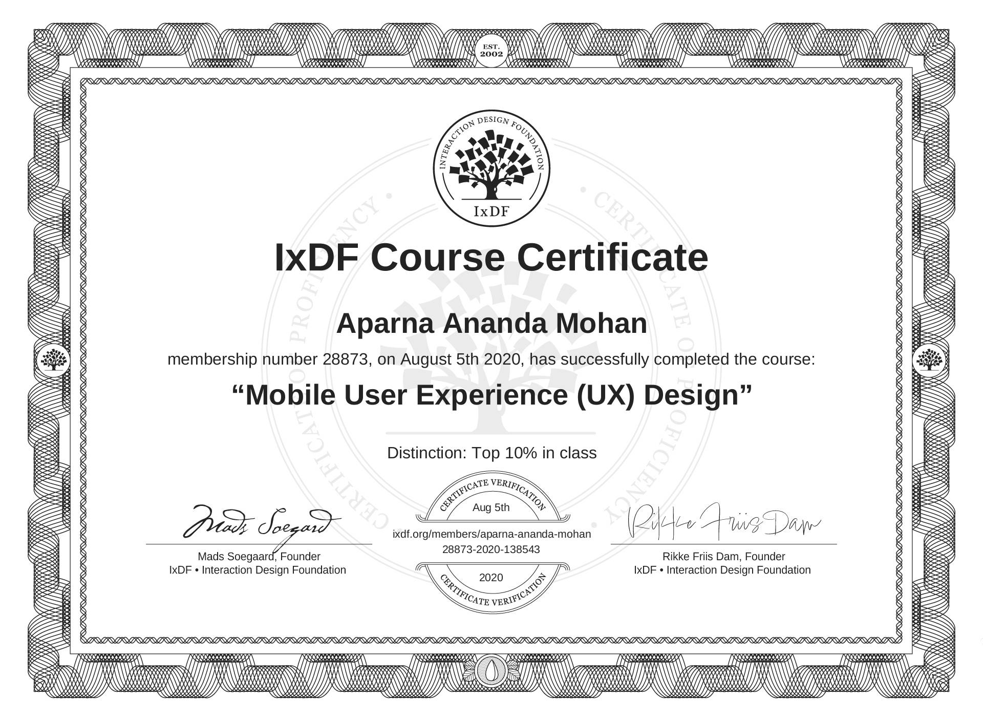 Aparna Ananda Mohan's IxDF Course Certificate: Mobile User Experience (UX) Design