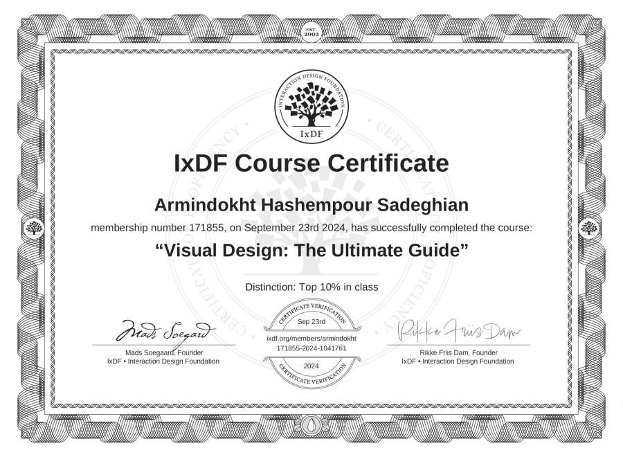 Armindokht Hashempour Sadeghian's IxDF Course Certificate: Visual Design: The Ultimate Guide