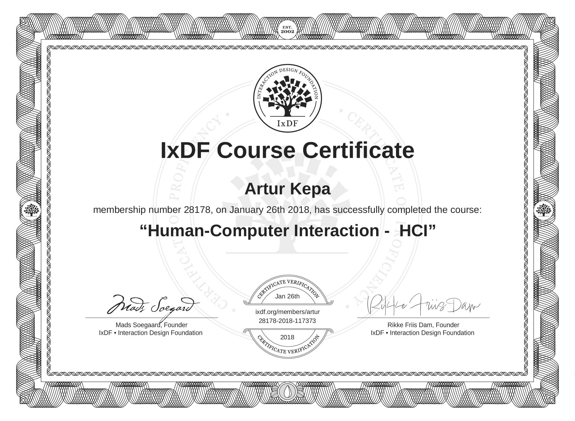 Artur Kępa's IxDF Course Certificate: Human-Computer Interaction - HCI