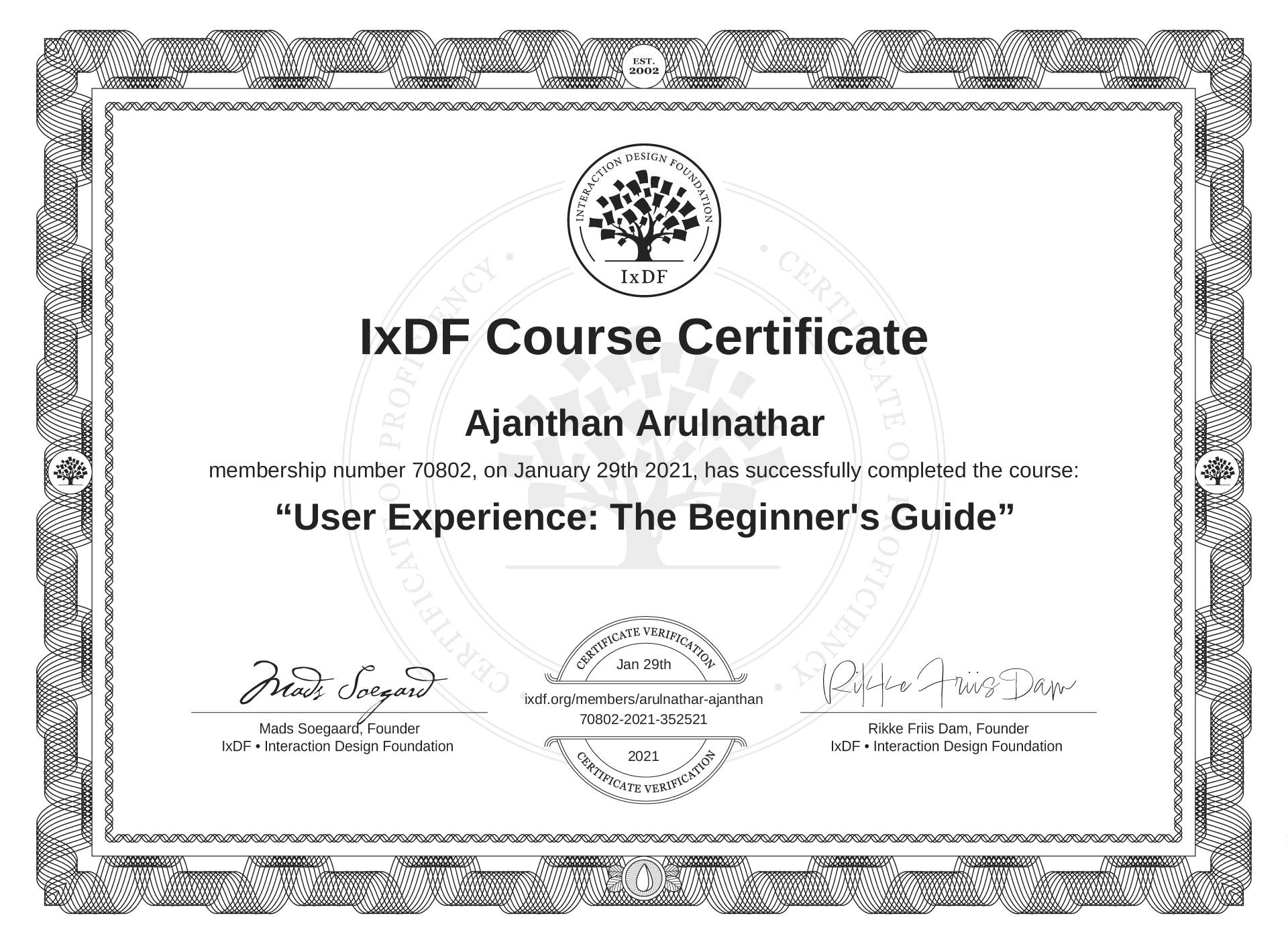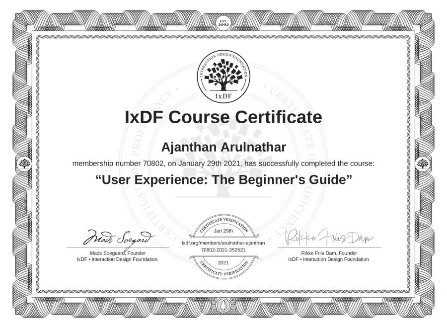 Ajanthan Arulnathar's IxDF Course Certificate: User Experience: The Beginner's Guide