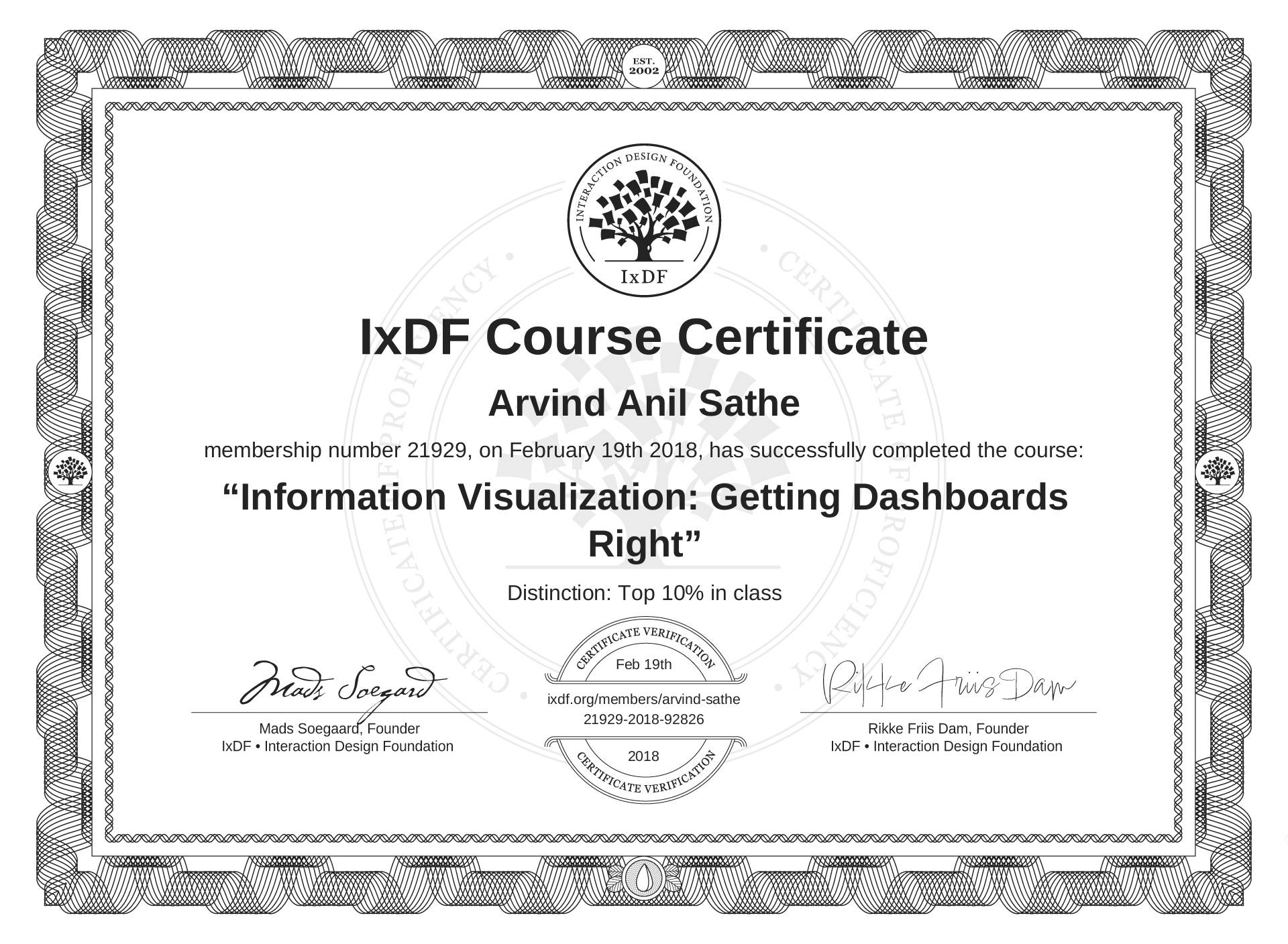 Arvind Anil Sathe's IxDF Course Certificate: Information Visualization: Getting Dashboards Right