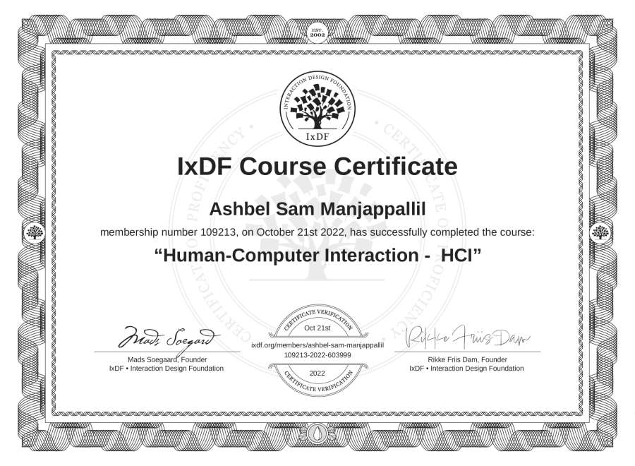 Ashbel Sam Manjappallil's IxDF Course Certificate: Human-Computer Interaction - HCI