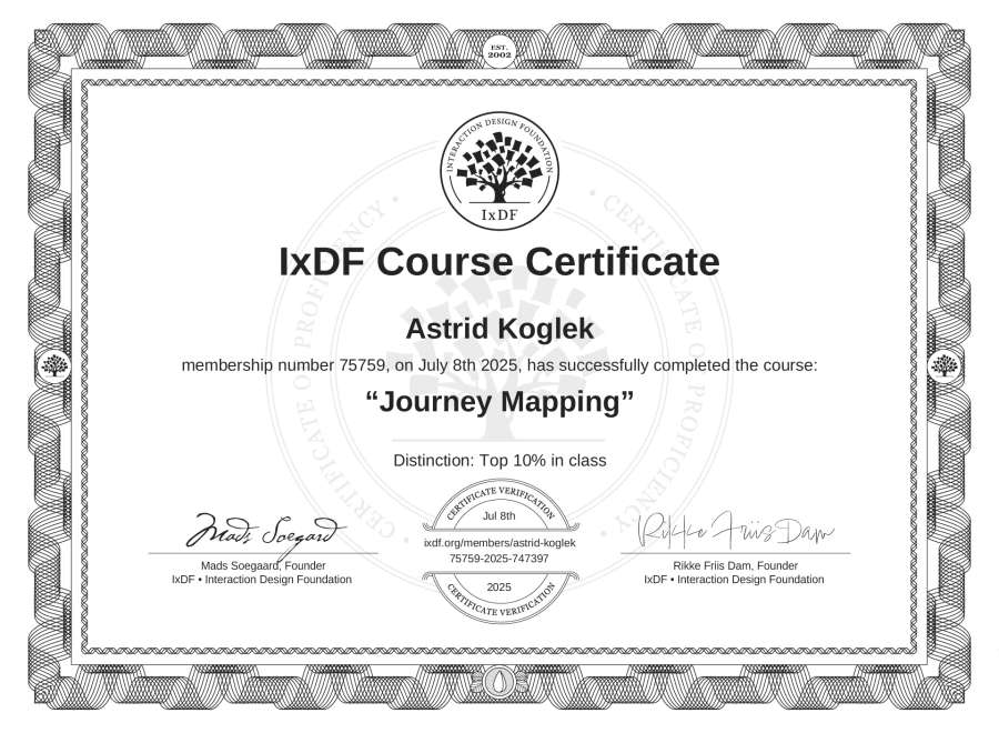 Astrid Koglek's IxDF Course Certificate: Journey Mapping