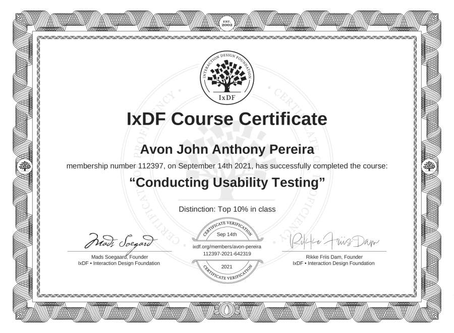 Avon John Anthony Pereira's IxDF Course Certificate: Conducting Usability Testing