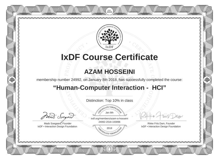 AZAM HOSSEINI's IxDF Course Certificate: Human-Computer Interaction - HCI