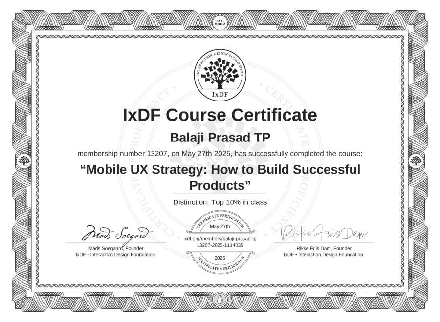Balaji Prasad TP's IxDF Course Certificate: Mobile UX Strategy: How to Build Successful Products