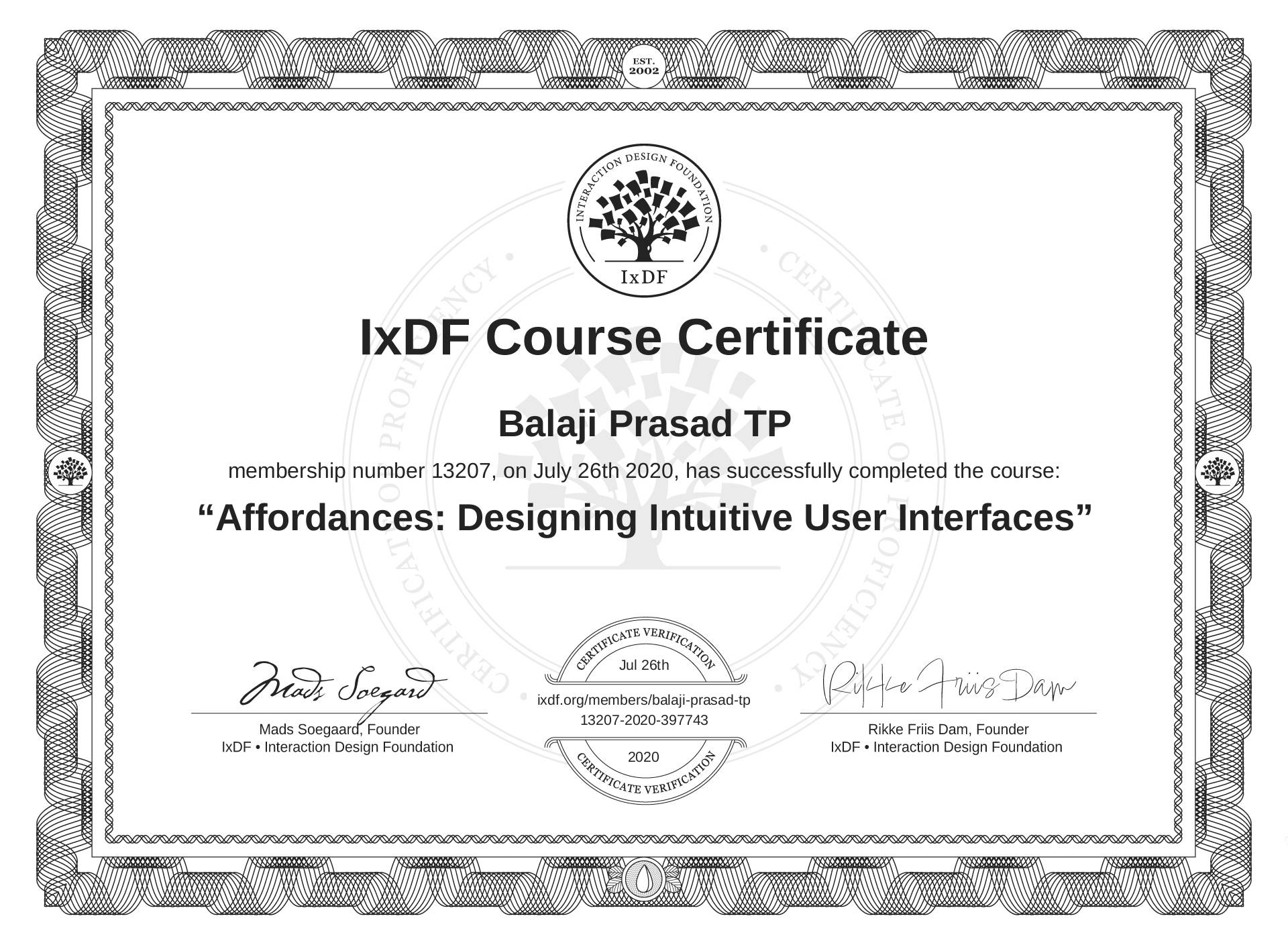 Balaji Prasad TP's IxDF Course Certificate: Affordances: Designing Intuitive User Interfaces