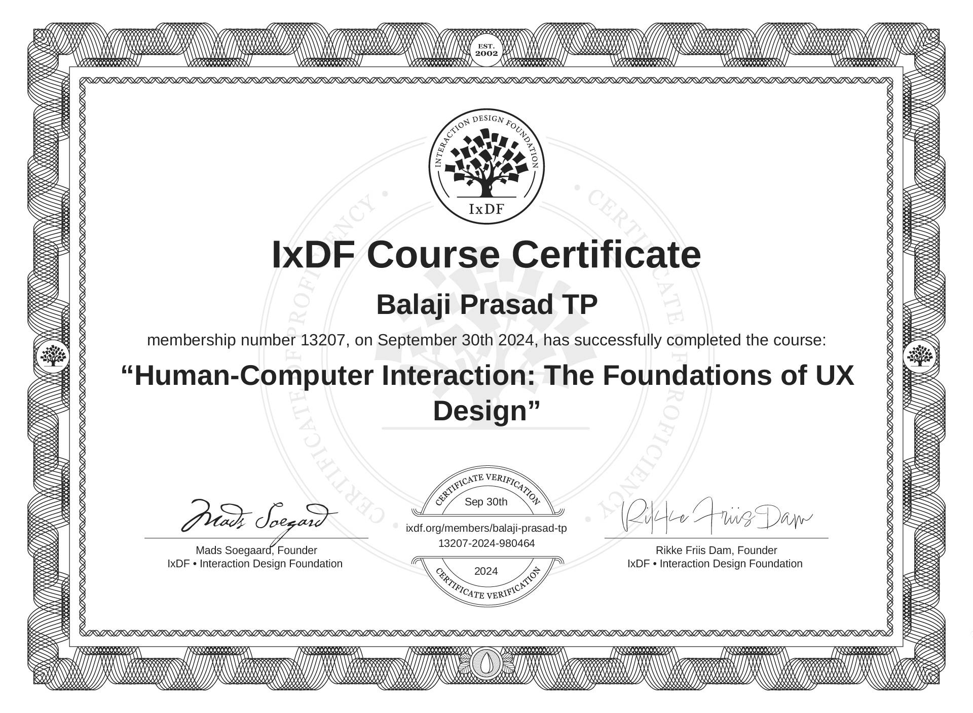 Balaji Prasad TP's IxDF Course Certificate: Human-Computer Interaction: The Foundations of UX Design