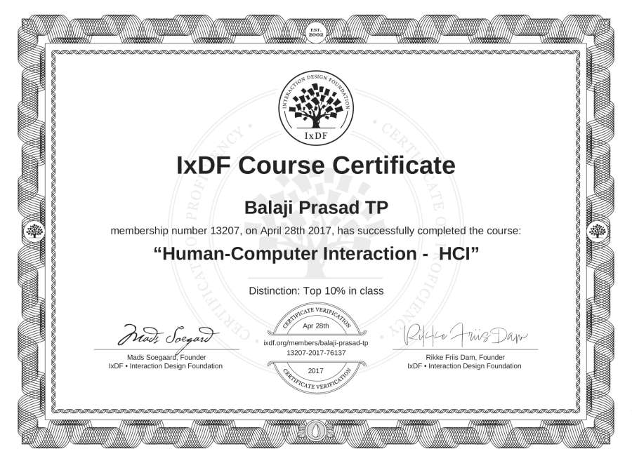 Balaji Prasad TP's IxDF Course Certificate: Human-Computer Interaction - HCI