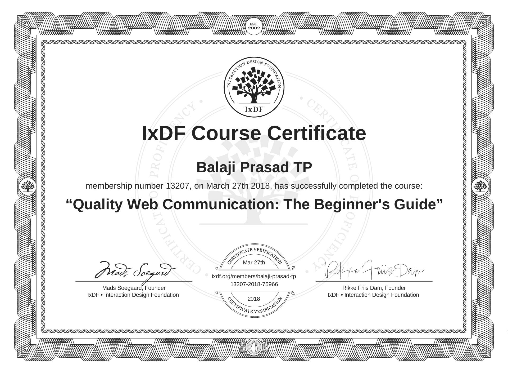 Balaji Prasad TP's IxDF Course Certificate: Quality Web Communication: The Beginner's Guide
