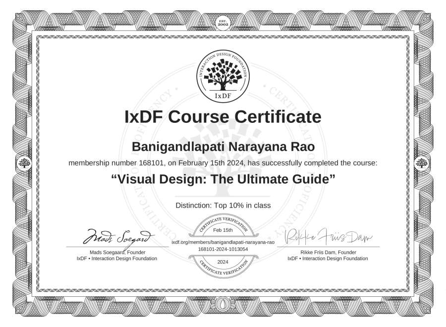 Banigandlapati Narayana Rao's IxDF Course Certificate: Visual Design: The Ultimate Guide