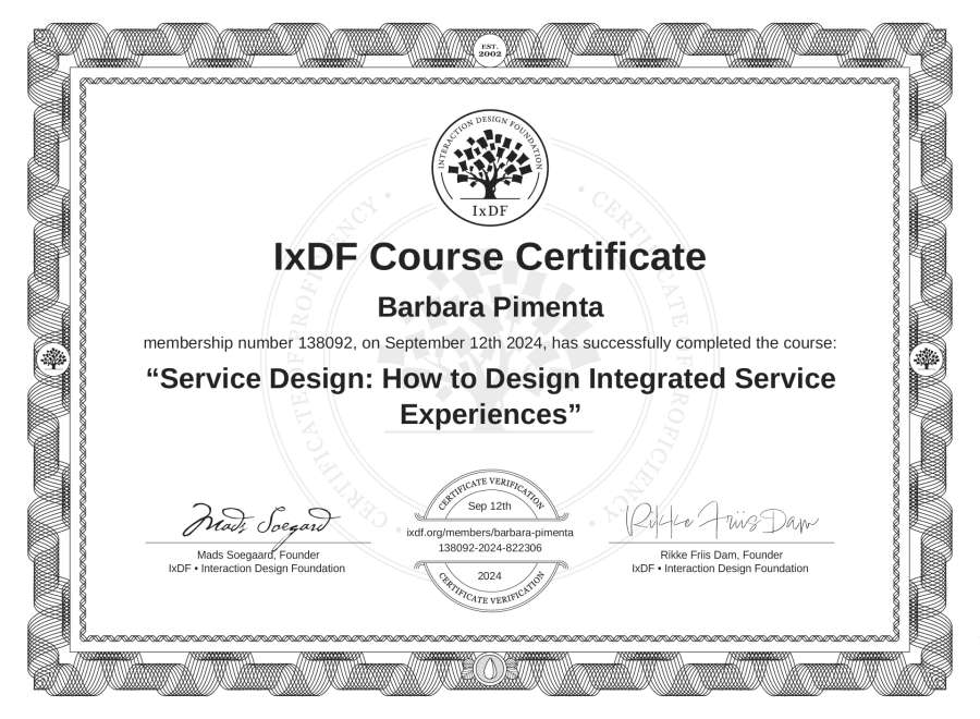 Bárbara Pimenta's IxDF Course Certificate: Service Design: How to Design Integrated Service Experiences