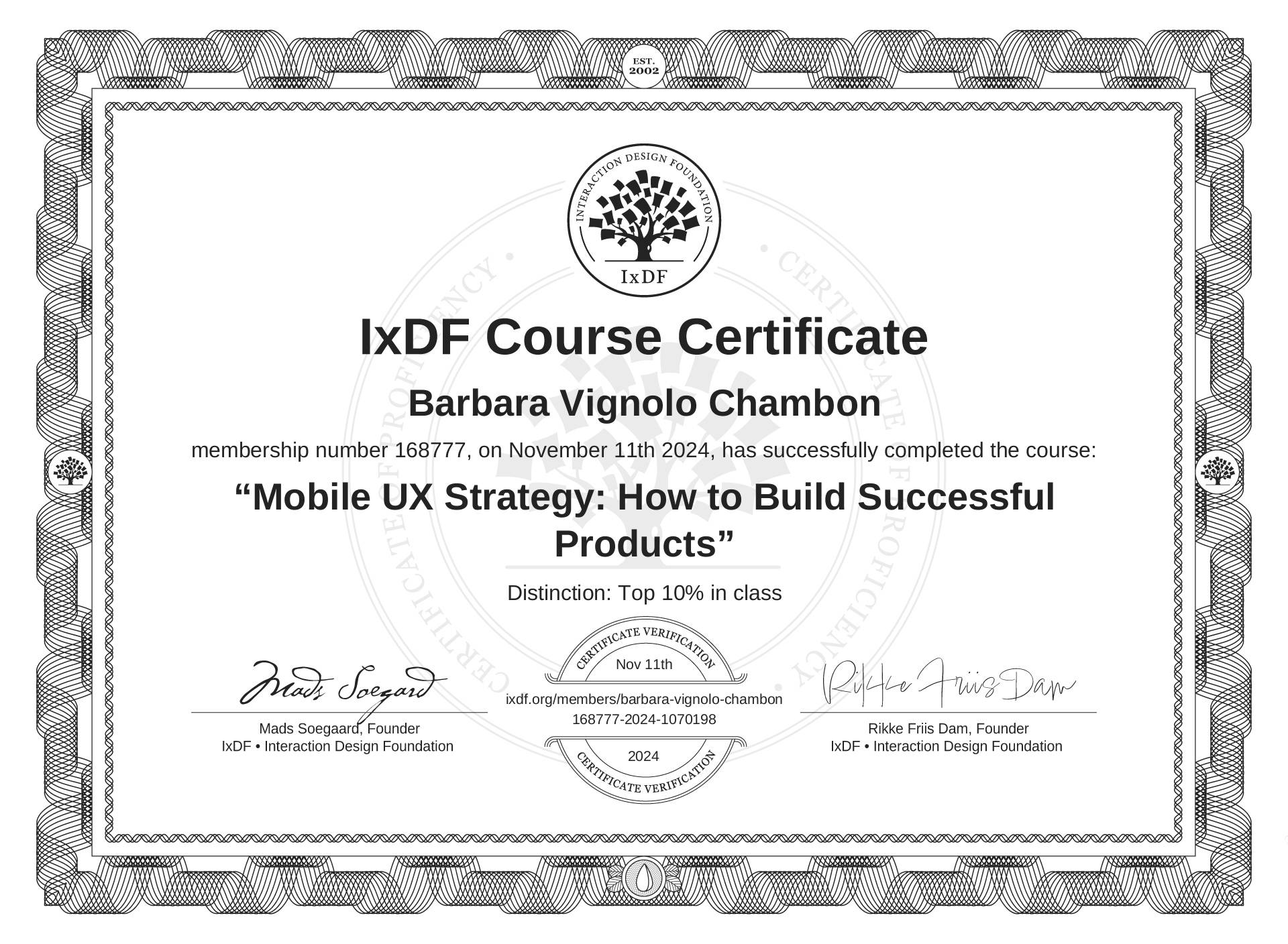 Bárbara Vignolo Chambon's IxDF Course Certificate: Mobile UX Strategy: How to Build Successful Products