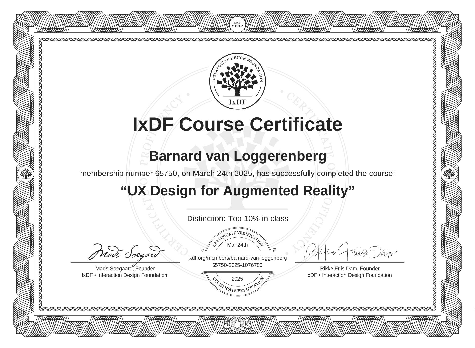 Barnard van Loggerenberg's IxDF Course Certificate: UX Design for Augmented Reality