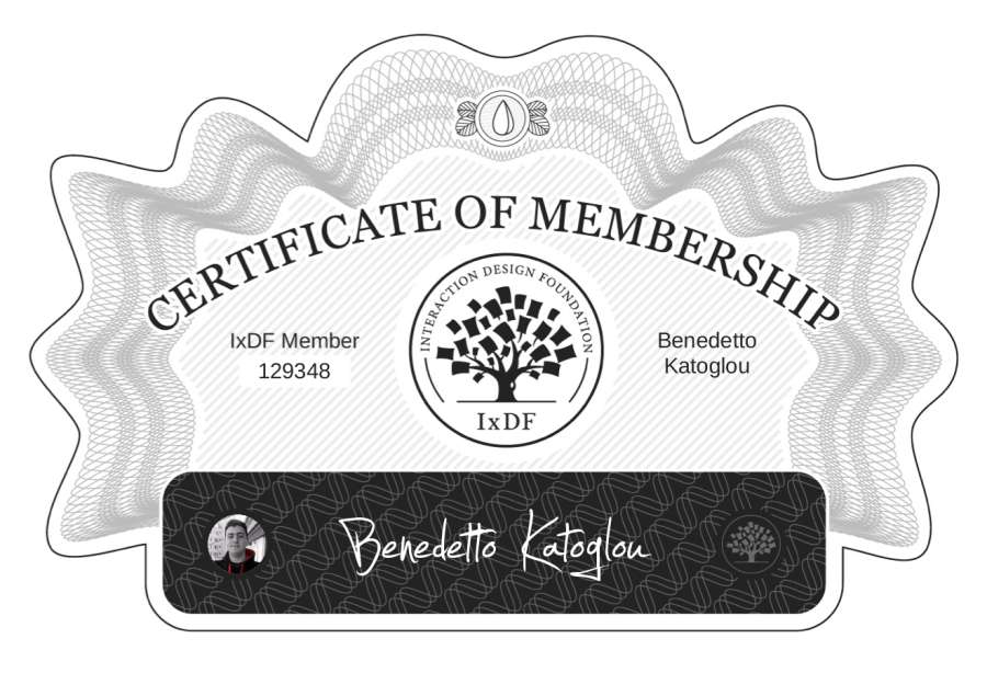 Page URL: https://www.interaction-design.org/members/benedetto-katoglou/certificate/membership/mc_Sh0nTVTCF