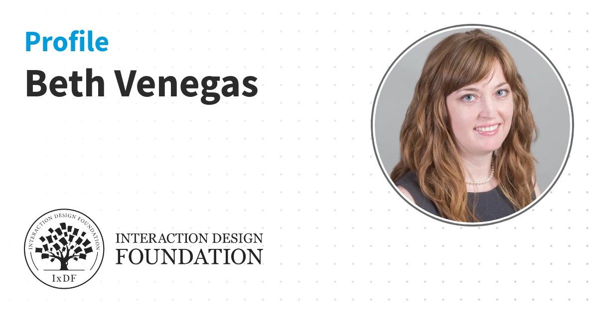 IxDF Course Certificates are awarded to Beth Venegas in formal recognition of their coursework surpassing the rigorous benchmarks of exceptional performance established by the IxDF Educational Codex.