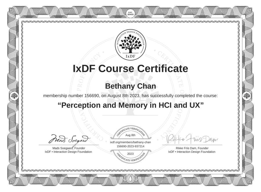 Bethany Chan's IxDF Course Certificate: Perception and Memory in HCI and UX