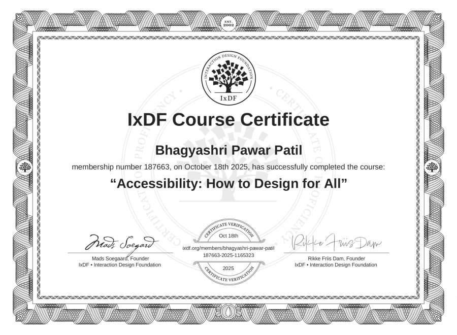 Bhagyashri Pawar Patil's IxDF Course Certificate: Accessibility: How to Design for All