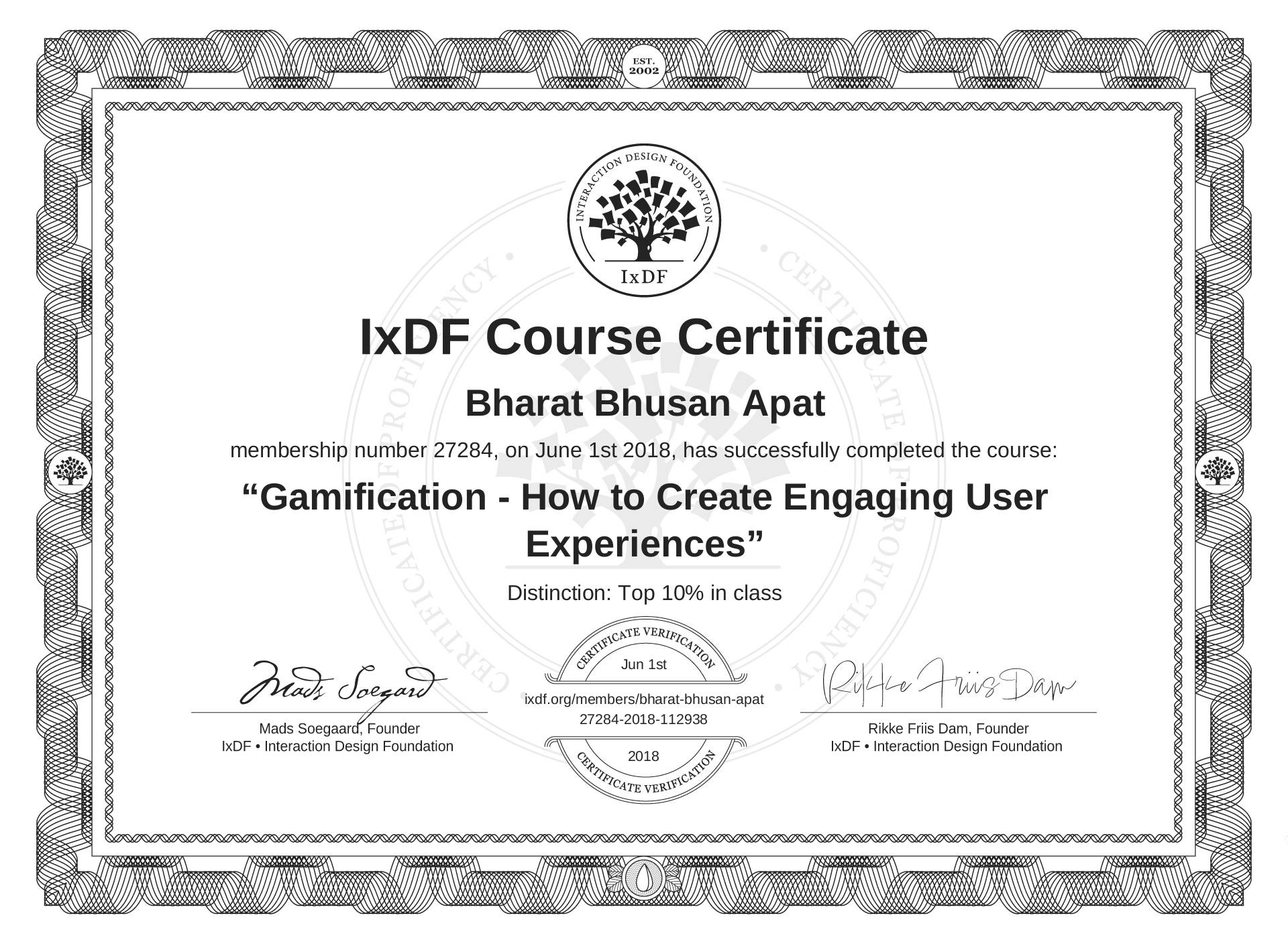 Bharat Bhusan Apat's IxDF Course Certificate: Gamification - How to Create Engaging User Experiences