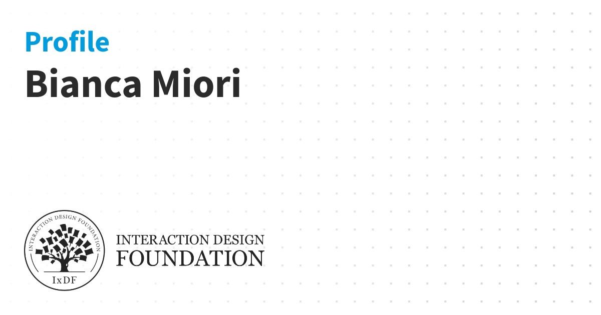 IxDF Course Certificates are awarded to Bianca Miori in formal recognition of their coursework surpassing the rigorous benchmarks of exceptional performance established by the IxDF Educational Codex.