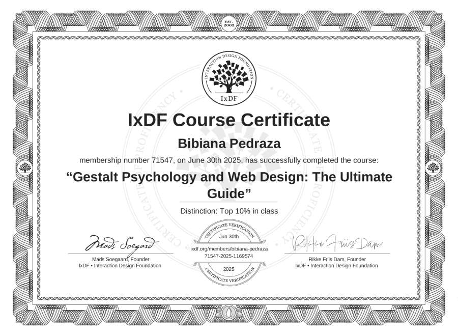 Bibiana Pedraza's IxDF Course Certificate: Gestalt Psychology and Web Design: The Ultimate Guide