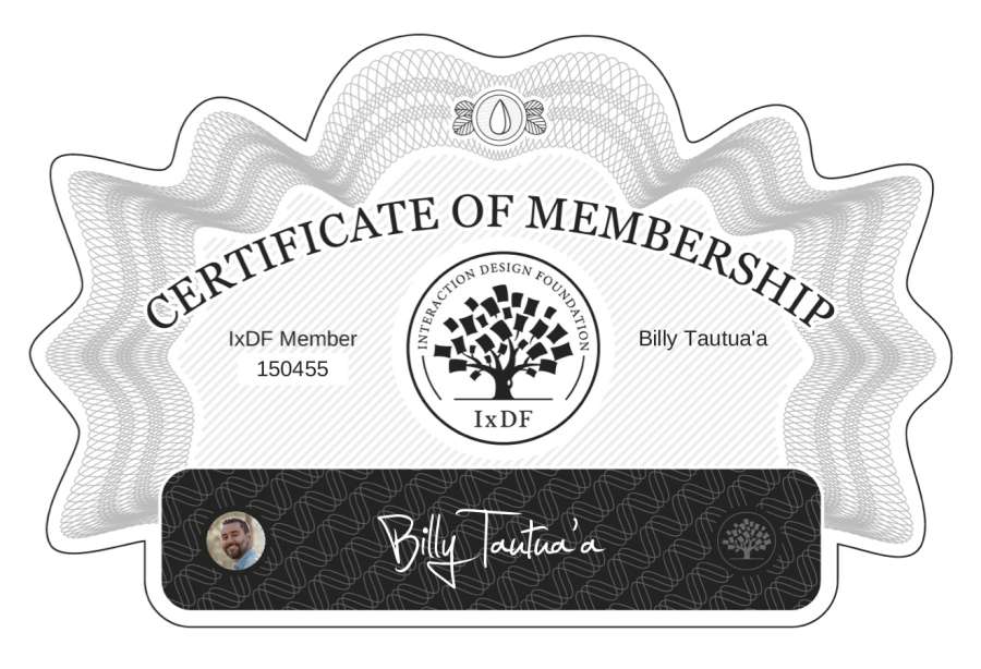 Page URL: https://www.interaction-design.org/members/billy-tautuaa/certificate/membership/mc_T2Bjph2GS