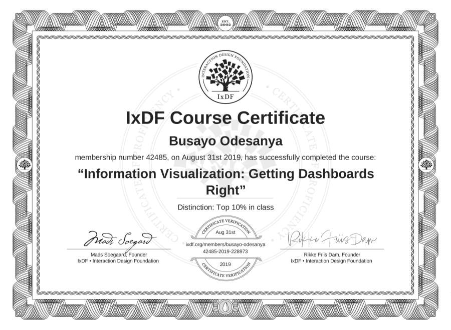 Busayo Odesanya's IxDF Course Certificate: Information Visualization: Getting Dashboards Right