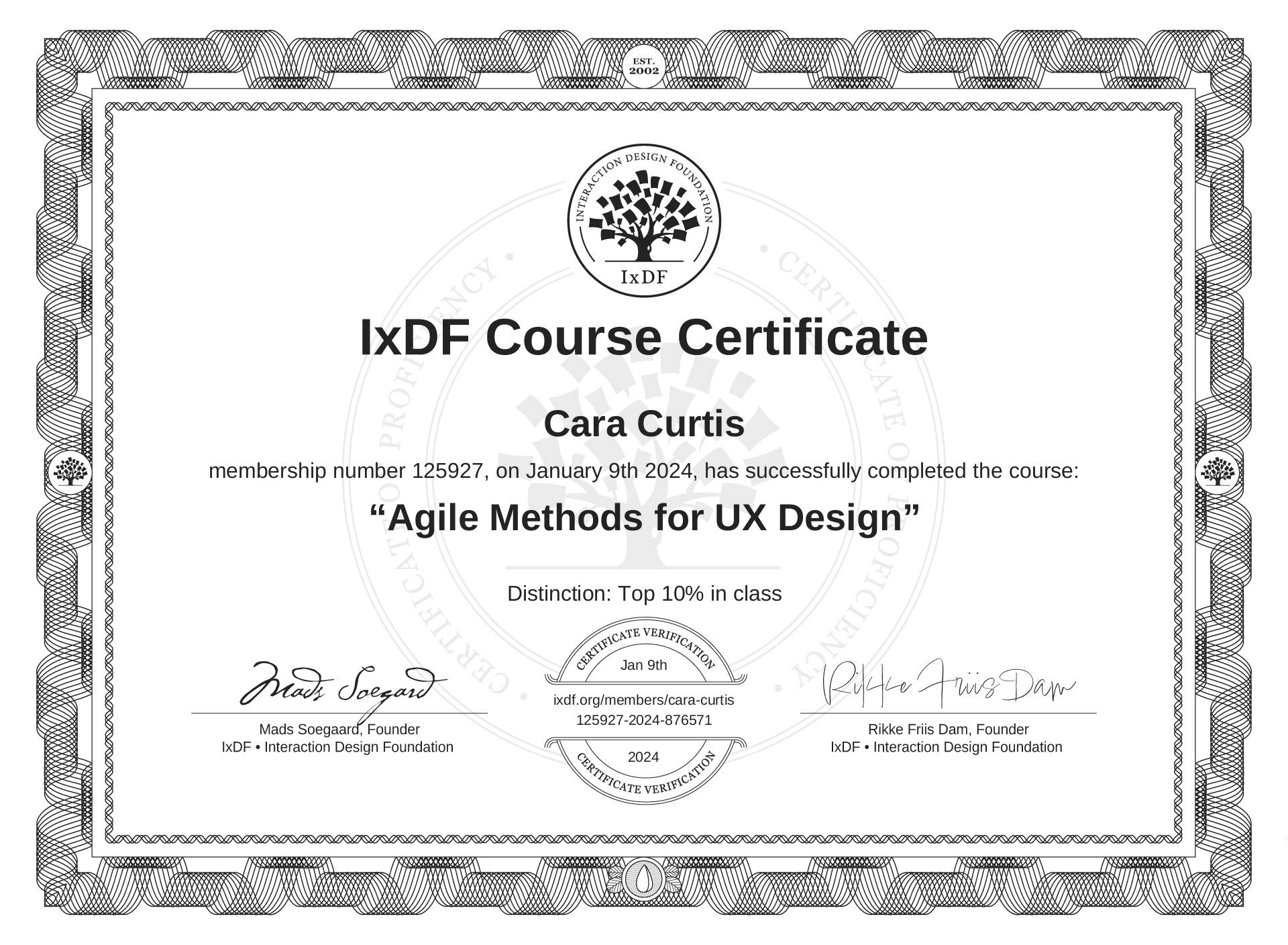 Cara Curtis's IxDF Course Certificate: Agile Methods for UX Design