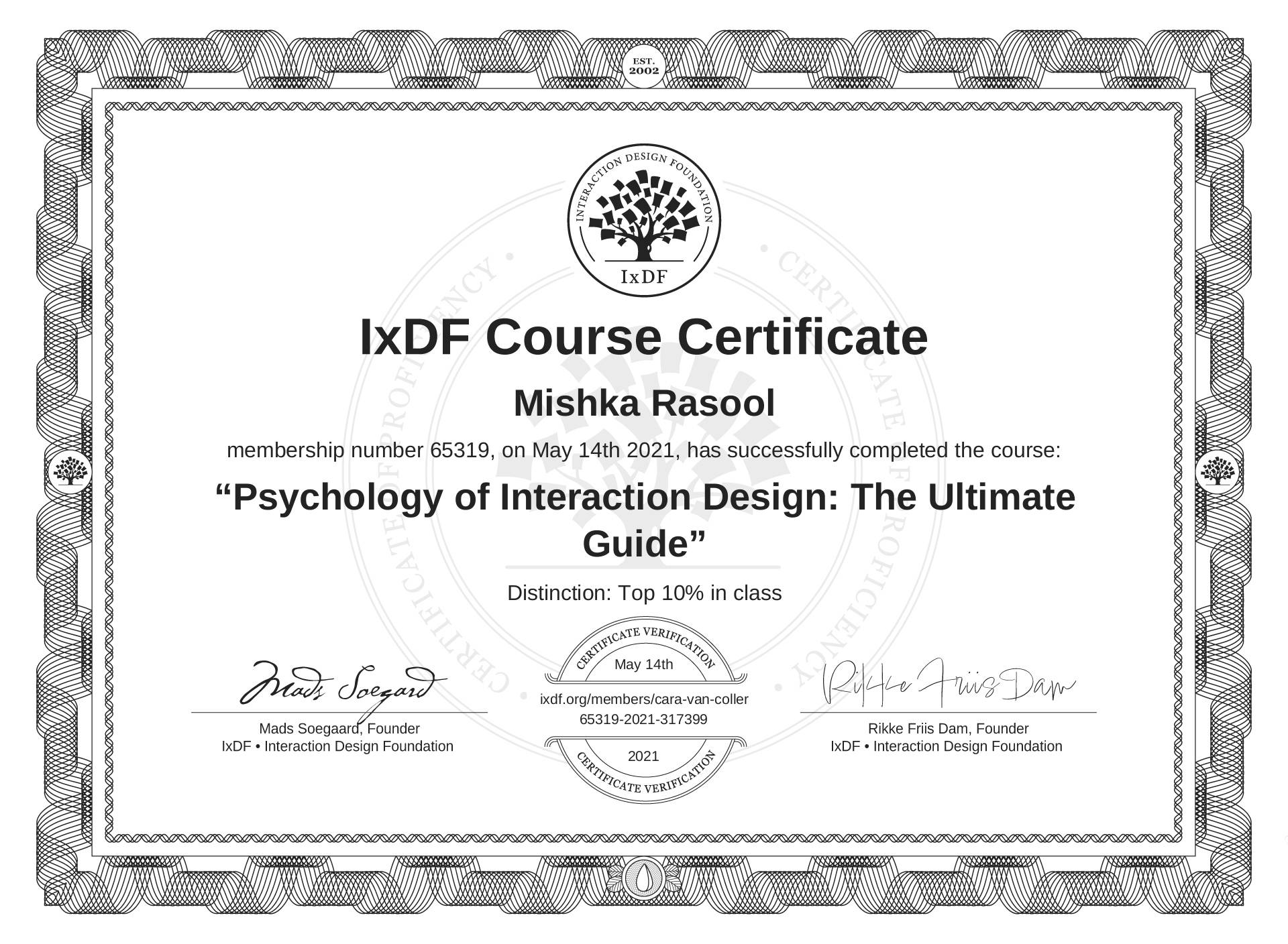 Mishka Rasool's IxDF Course Certificate: Psychology of Interaction Design: The Ultimate Guide
