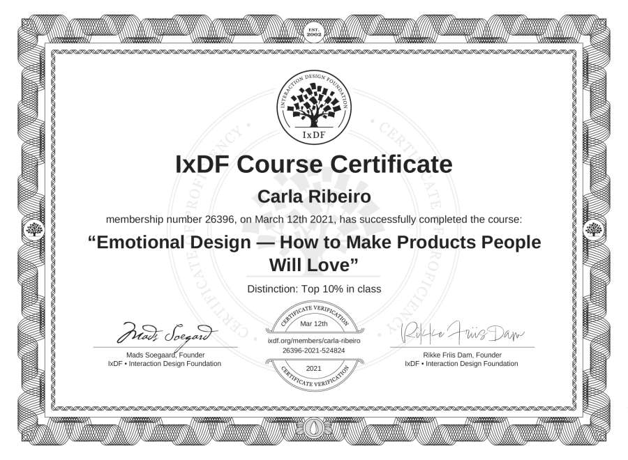 Carla Ribeiro's IxDF Course Certificate: Emotional Design — How to Make Products People Will Love