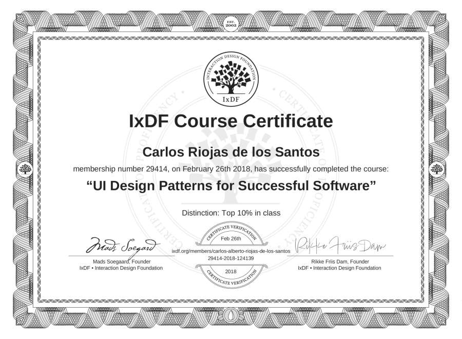 Carlos Riojas de los Santos's IxDF Course Certificate: UI Design Patterns for Successful Software