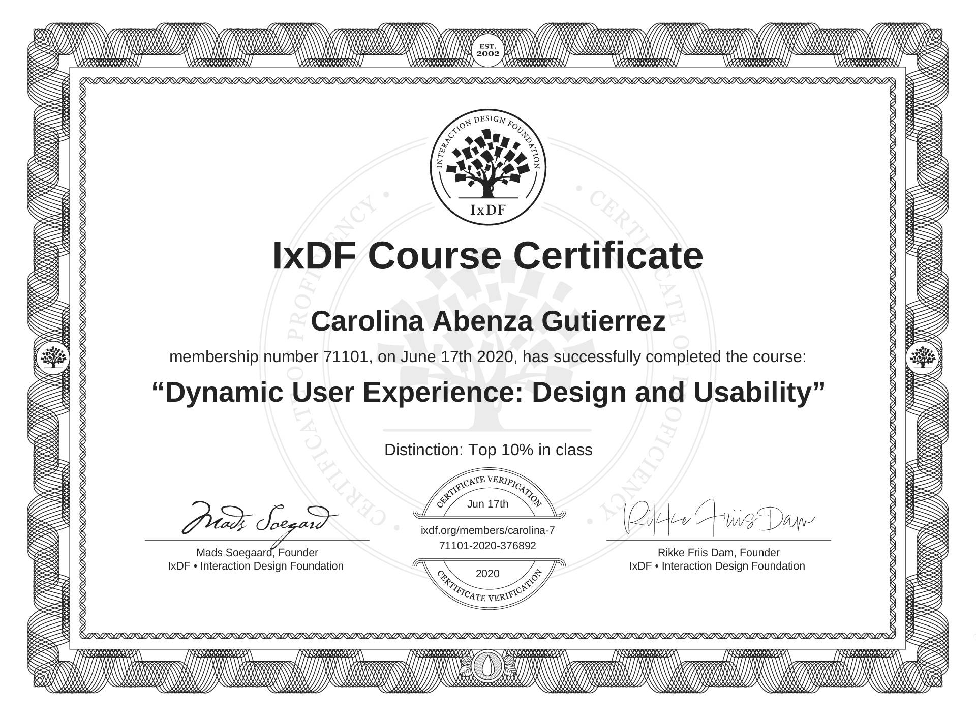 Carolina Abenza Gutiérrez's IxDF Course Certificate: Dynamic User Experience: Design and Usability