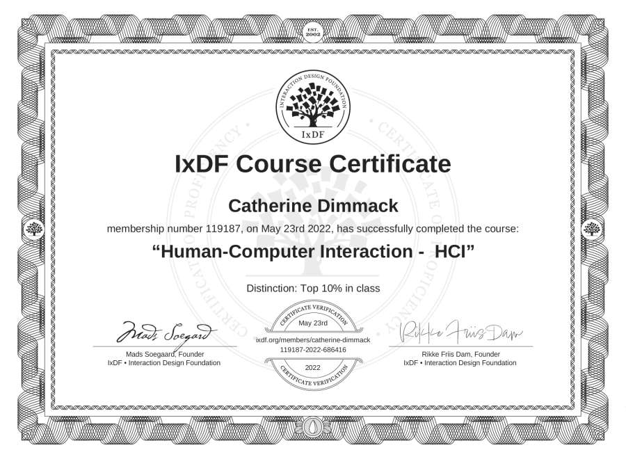 Catherine Dimmack's IxDF Course Certificate: Human-Computer Interaction - HCI