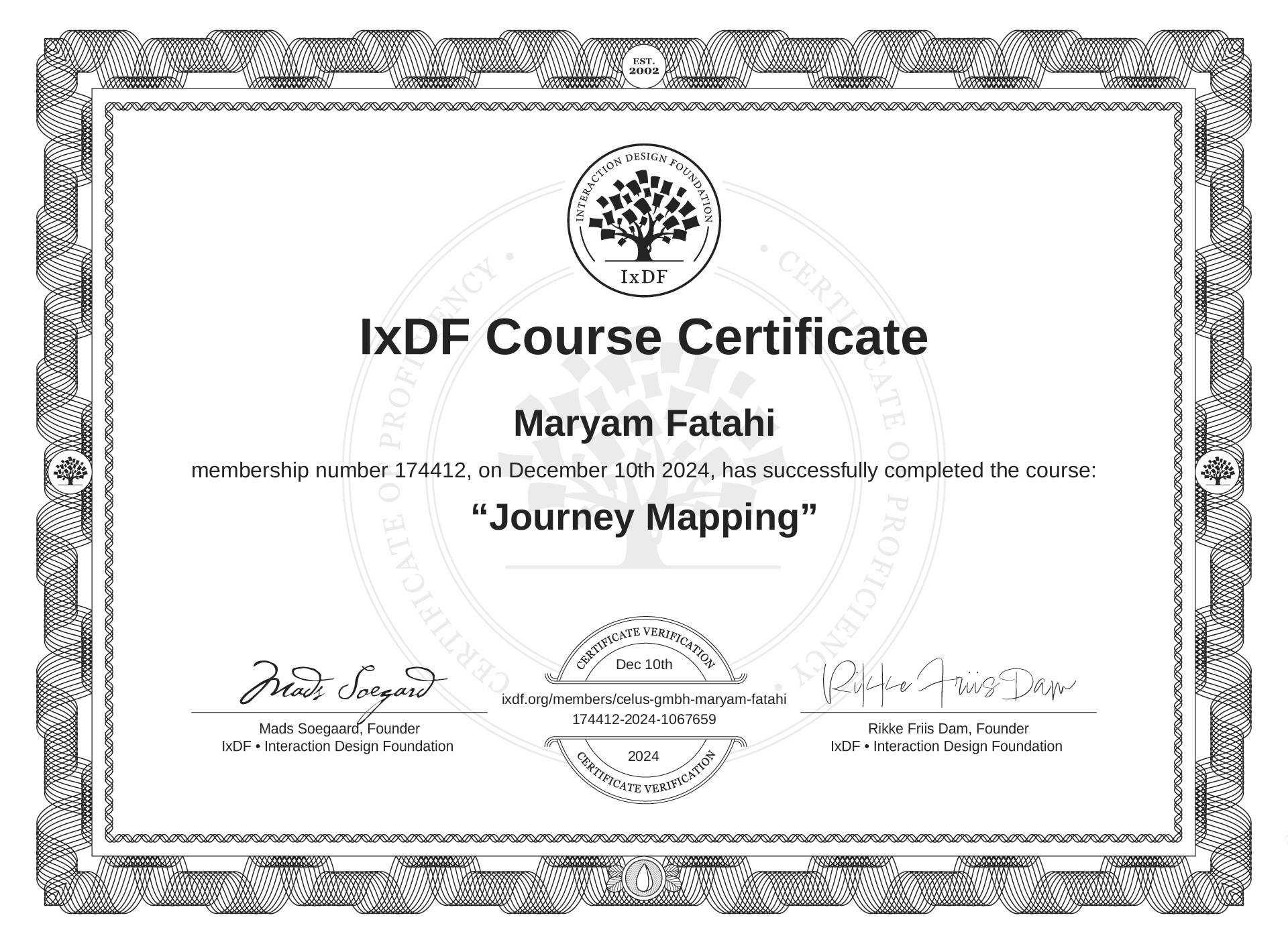 Maryam Fatahi's IxDF Course Certificate: Journey Mapping