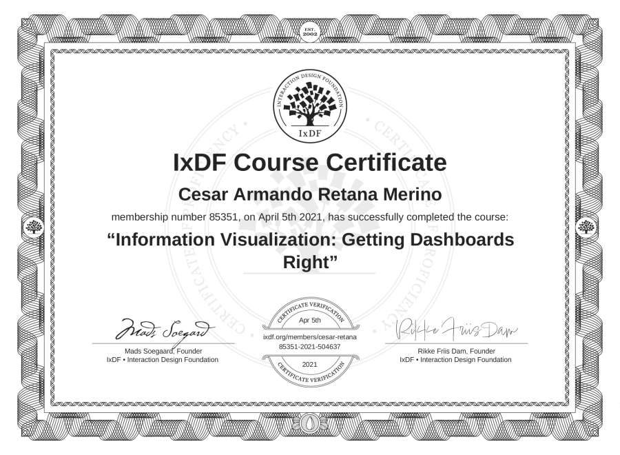 César Armando Retana Merino's IxDF Course Certificate: Information Visualization: Getting Dashboards Right