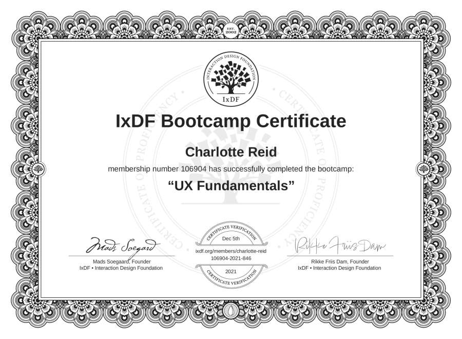 Charlotte Reid's Bootcamp Certificate: UX Fundamentals