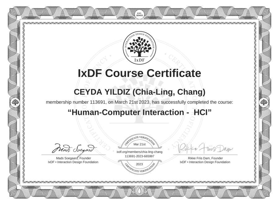 CEYDA YILDIZ (Chia-Ling, Chang)'s IxDF Course Certificate: Human-Computer Interaction - HCI